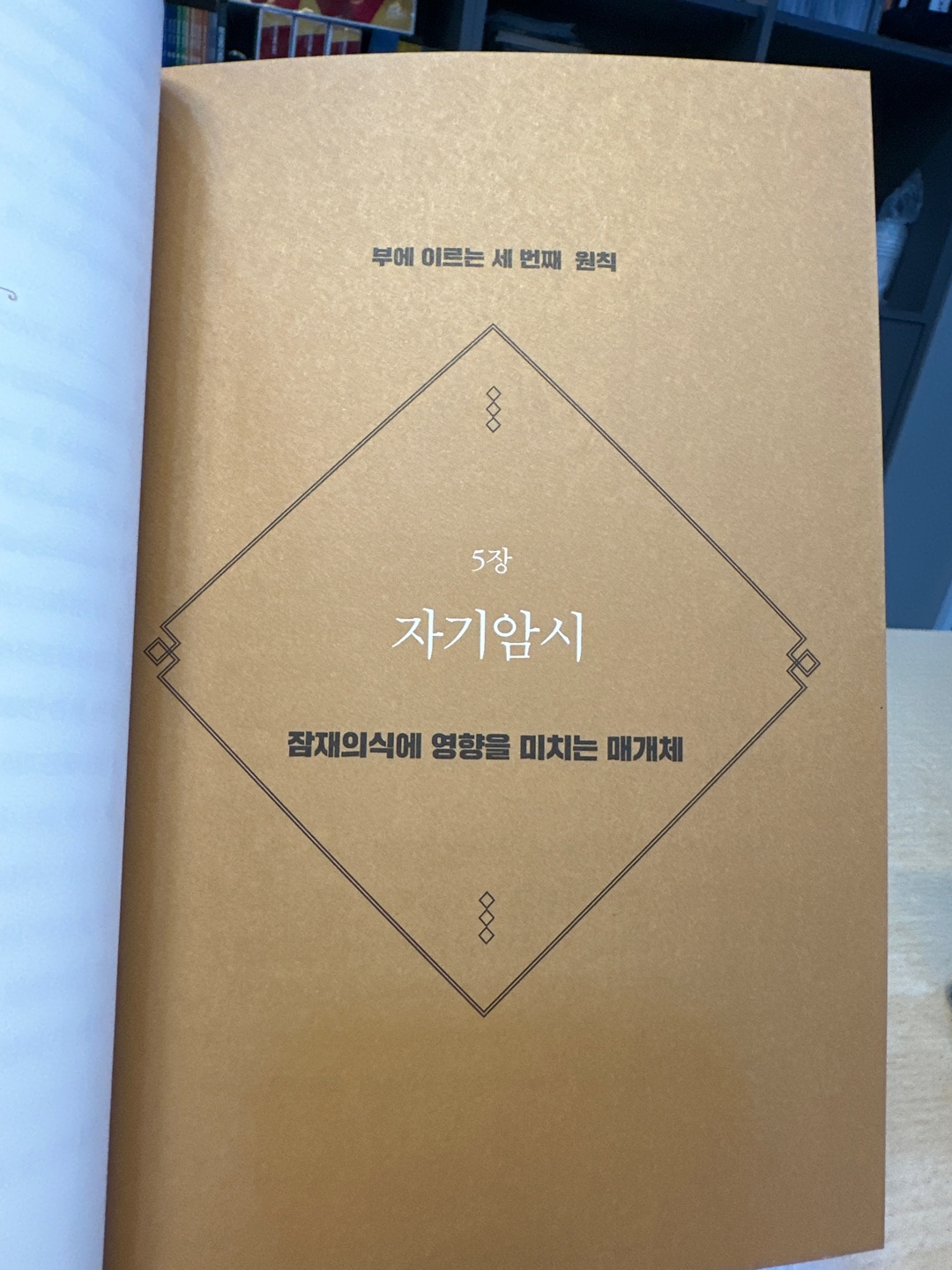 자기암시는 의도적으로 의식 수준에 남겨둔 지배적인 사고를 통해(이 생각이 부정적인지, 긍정적인지는 관계없다) 잠재의식에 도달하여 영향을 미친다. 인간은 오감을 통해 잠재의식에 가 닿는 대상을 통제할 수 있다. 하지만 대부분은 이 능력을 사용하지 못한다. 많은 사람들이 가난하게 살아가는 이유는 바로 이 때문이다. 기억하라. 열망을 큰 소리로 읽는다고 해도 단순히 단어를 소래 내어 읽는 것만으로는 결과가 생기지 않는다. 거기에 감정이나 느낌이 담겨야 한다. 자기암시의 원칙을 실행해도 열망하는 결과를 얻지 못한다면 이 사실을 이해하지 못해서 이다. 책, 사진, 좌우명처럼 암시를 주는 물건들을 주위에 두어라. 성과를 높이고 자존감을 강화할 상징적인 물건들을 골라 계속 모아라. 다른 물건들과 함께 다른 각도에서 볼 수 있도록 물건의 자리를 계속 바꾸어보라. 행동만이 아니라 머릿속으로도 이 지침을 따른다면 완전히 새로운 세상이 새로운 힘이 나타날 것이다. 많은 철학자들이 인간은 자기 운명의 주인이라고 말한다. 인간이 자기 자신의 주인, 자기 환경의 주인인 이유는 잠재의식에 영향을 미칠 힘을 지니고 있어서다. 열망을 재화로 전환하는 능력은 자기암시에서 나온다. 역경, 실패, 고통에는 성공의 씨앗이 내포되어 있다.