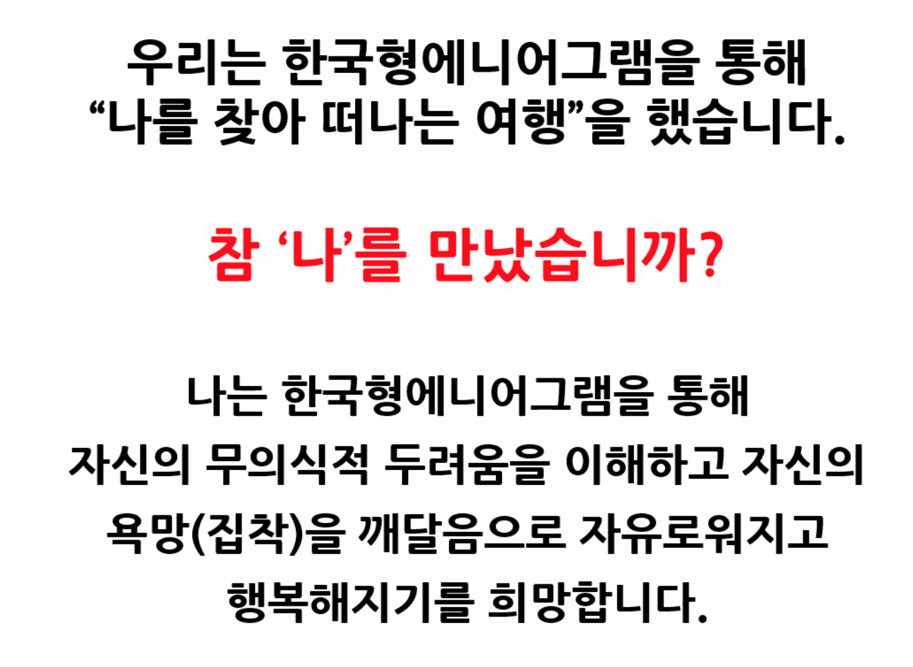 나는 나를 사랑하고 타인을 이해하며 행복한 생활을 하겠습니다.